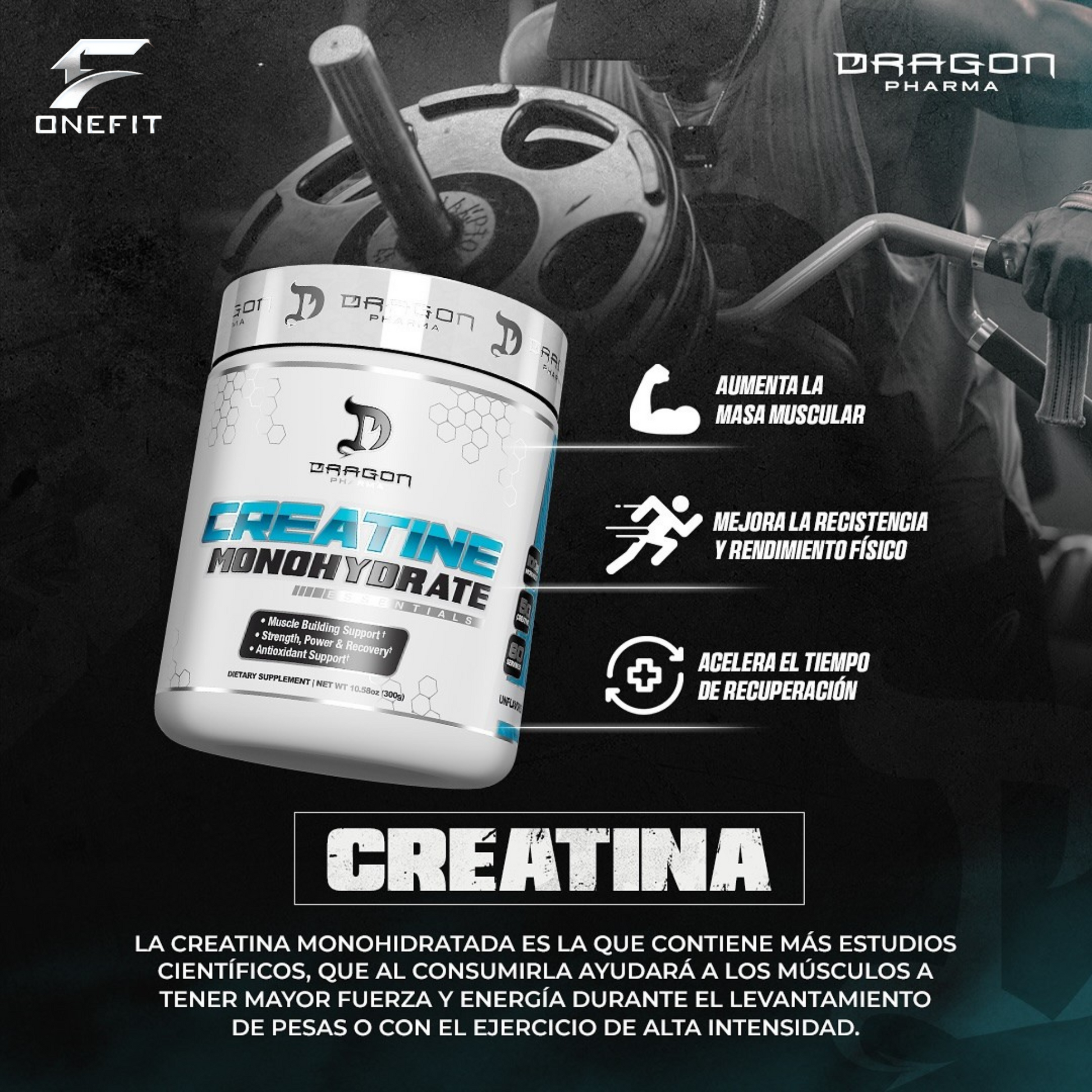 Aquí es donde entra en acción la Creatina Monohidratada de Dragon Pharma. Su fórmula pura y efectiva ayuda a aumentar la fuerza explosiva, mejorar la recuperación muscular y potenciar el crecimiento de masa magra. Al favorecer la hidratación intramuscular, tus músculos se ven más llenos, definidos y con un aspecto sólido.